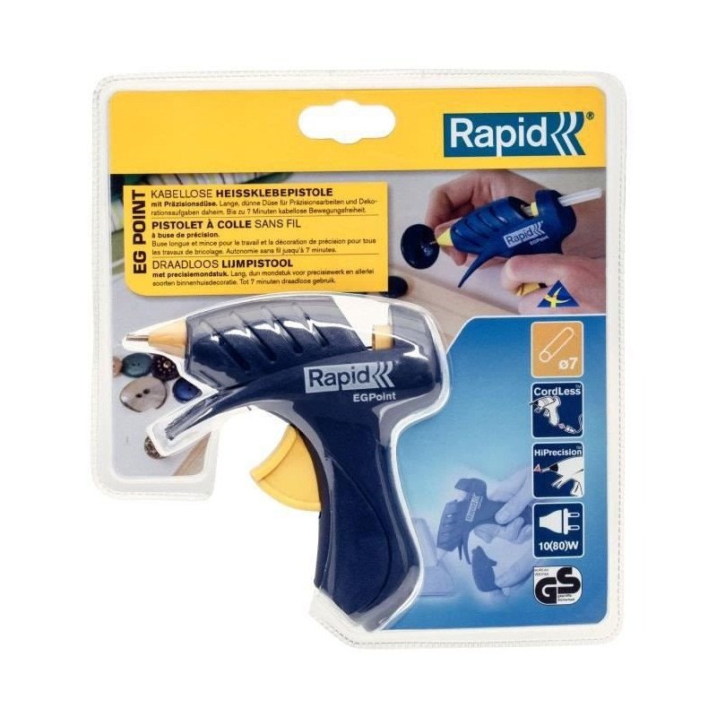 RAPID Pistolet a colle sans fil EGPoint. Petit pistolet a colle tres fiable et polyvalent grâce a son cordon amovible. Buse de 8 mm pour les applications nécessitant de la précision.