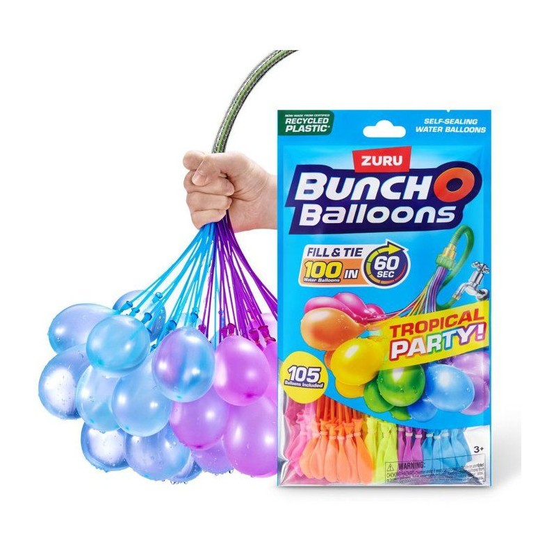 Bunch O Balloons Tropical Party: 100 bombes a eau se ferment automatiquement en 60 sec. Fini le stress, branche-les au robinet et éclabousse tes amis! Pack inclut 3 grappes, soit 100 ballons.