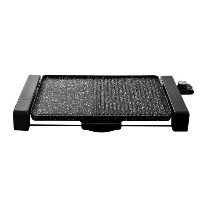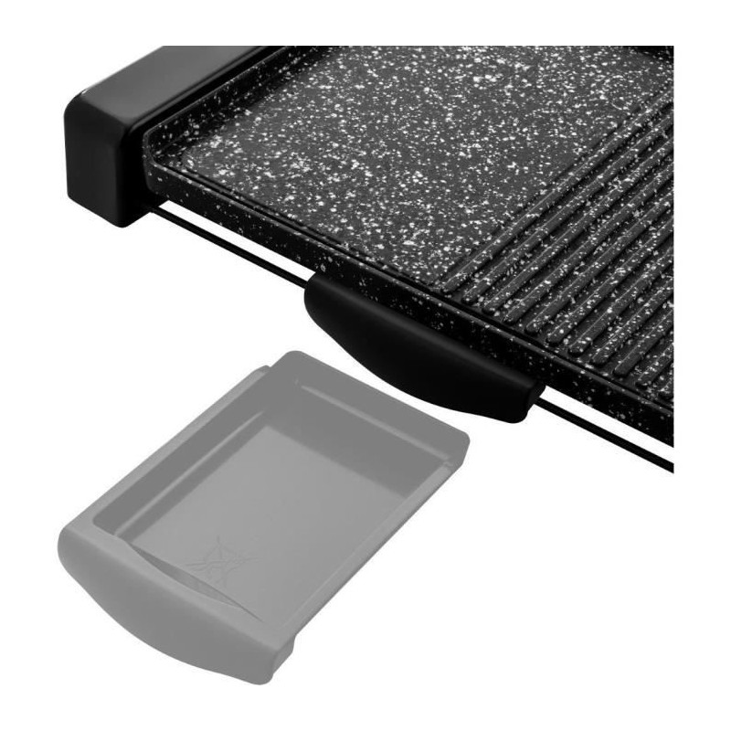 Le grill électrique SENCOR SBG 108BK est un appareil 2 en 1 avec une surface de cuisson de 47 x 31 cm. Il offre un contrôle de température réglable, un revetement en granit facile a nettoyer et des poignées résistantes a la chaleur. Avec une puissance de 2300 W et des canaux a graisse, il garantit une cuisson saine et un nettoyage facile grâce a son bac d'égouttage amovible.
