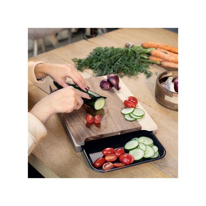 Planche a découper - LIVOO - MES155 - Bois acacia FSC - 36,5 x 27,5 cm - Bac récupérateur amovible