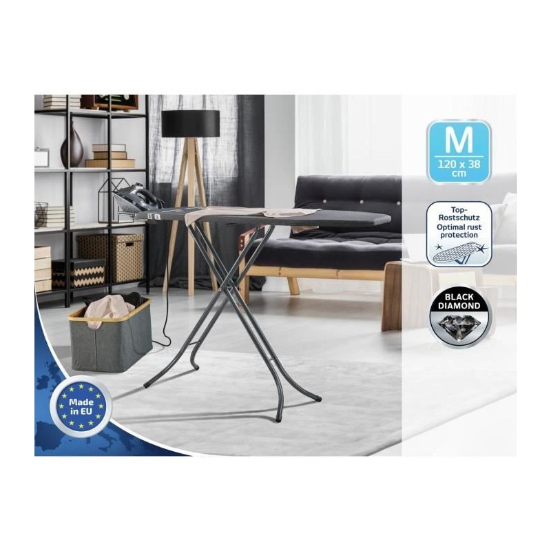 Table a repasser - Leifheit - Classic M Black - Hauteur réglable de 69 a 88 cm - Housse en cotton - 120 x 38 cm