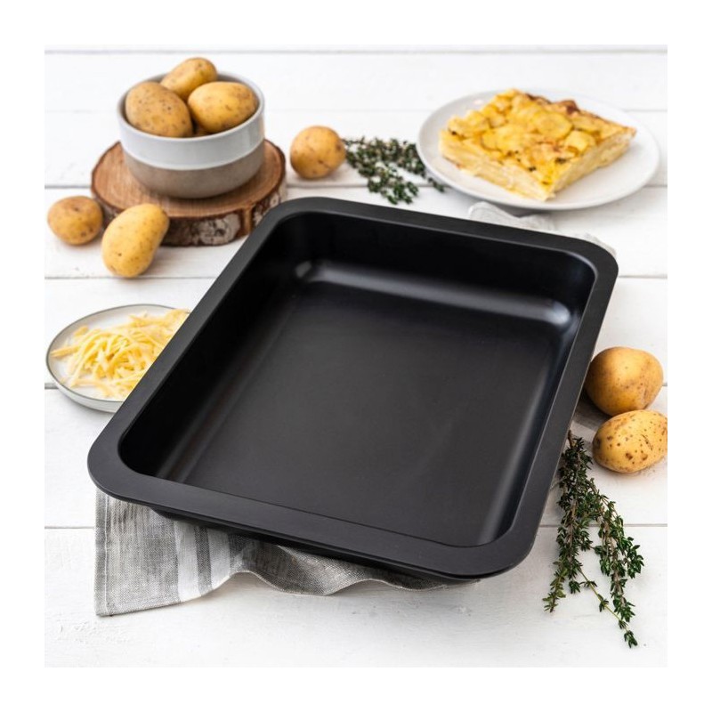 Zenker vous propose ce lot de 2 plats a four rectangulaires vous permettant de préparer des gratins, des lasagnes, des tians de légumes et autres. LE PETIT + : Ces deux plats de four de qualité allemande vous permettront de réaliser des plats tels que des gratins, des viandes rôties et des plats en sauce avec leurs hauts rebords. COMPOSITION : Ces plats sont faits en acier inoxydable avec un revetement en ILAG antiadhésif qui vous garantit de pouvoir servir votre plat facilement sans qu'il ne colle sur les parois du plat a four. DIMENSIONS : Le plus grand des deux plats a four mesure 33 x 25 cm tandis que le plus petit mesure 24 x 17,5 cm, dimensions parfaites pour cuisiner de bons gratins. UTILISATION : Fabriqués en Allemagne, ces deux plats de four cuiront vos délicieuses recettes jusqu'a une température maximale de 230°C, largement suffisant pour des lasagnes ou un gratin dauphinois Zenker est une marque faisant partie du groupe Fackelmann Brands et elle propose une large gamme d'ustensiles de pâtisserie et de moules a gâteaux. Concernant les ustensiles de pâtisserie, Zenker frappe fort en mettant a disposition des ustensiles de préparation mais aussi de décoration pour les pâtissiers confirmés. Côté moules a gâteaux c'est une marque pionniere qui propose des innovations telles que les moules a gâteaux en silicone et fibre de verre ne nécessitant pas de matiere grasse et proposant des résultats de cuisson incroyables. Zenker possede donc une large gamme d'accessoires et d'ustensiles pour vous accompagner dans vos recettes du quotidien mais aussi pour des évenements exceptionnels comme les fetes, les anniversaires, les mariages, etc.