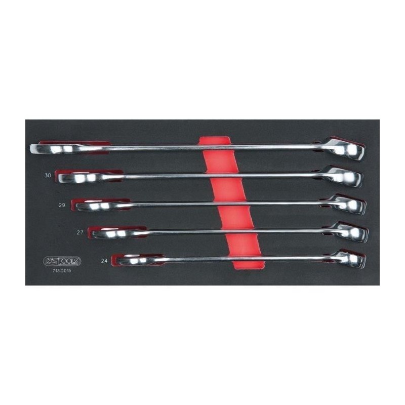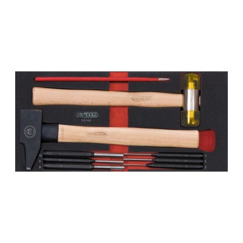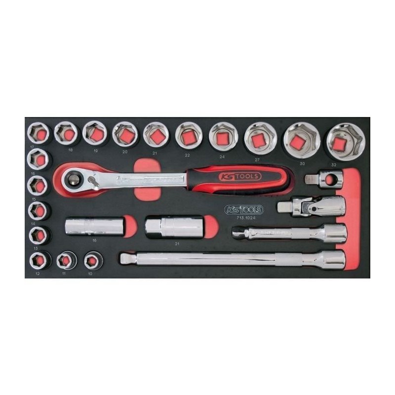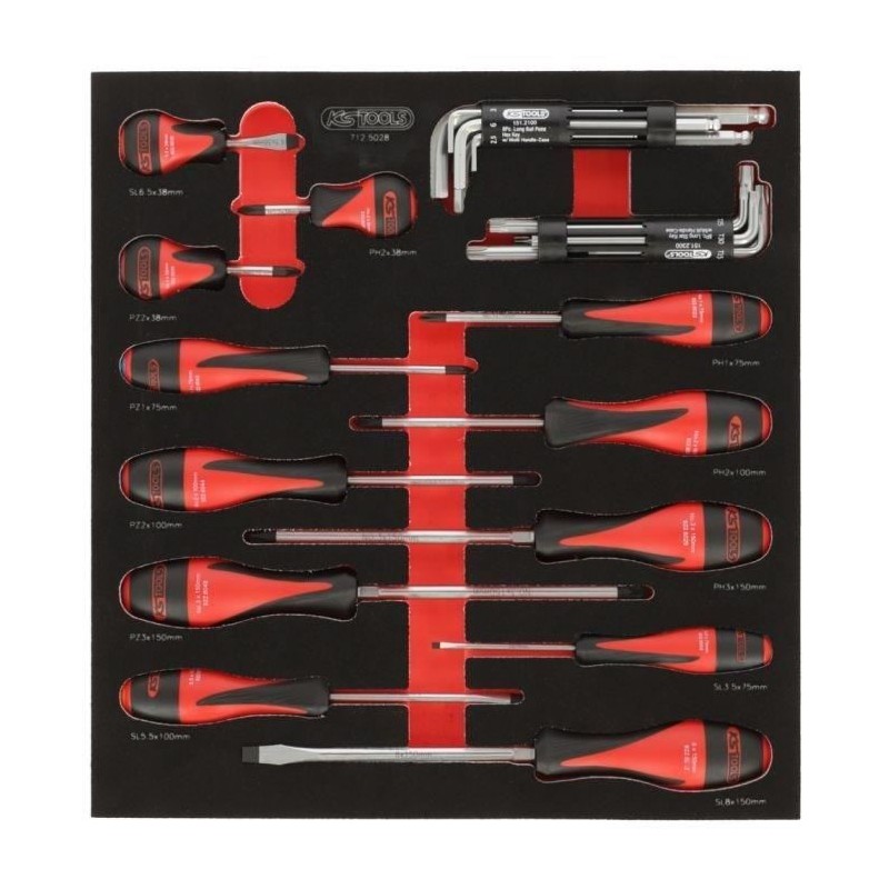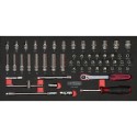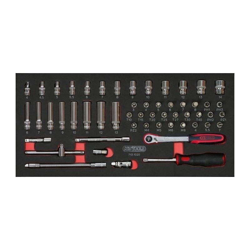 Ce module d'outils KS TOOLS 714.0158 comprend 158 pieces soigneusement organisées dans 3 tiroirs. Les empreintes des outils sont découpées au laser, garantissant une résistance aux huiles et produits chimiques, avec une mousse imputrescible pour une durabilité optimale.