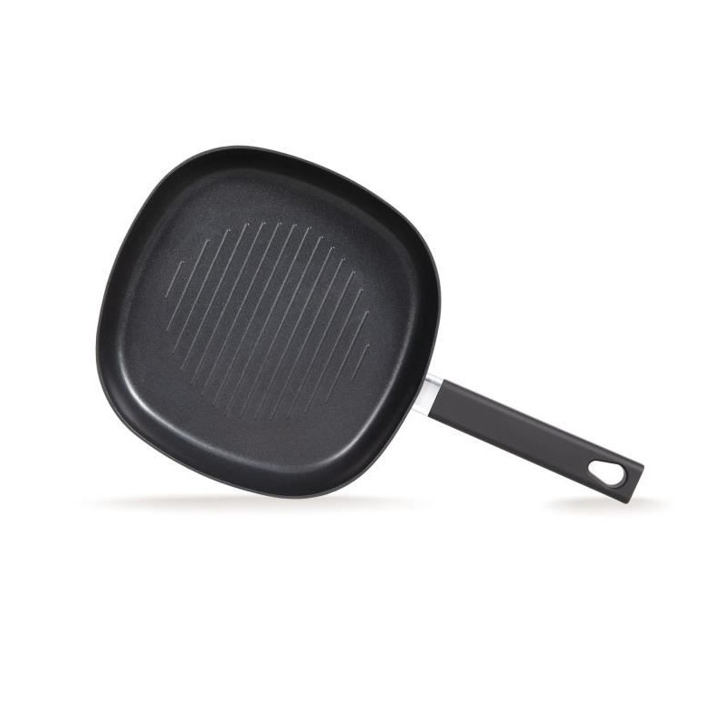 Grillette en aluminium de 24 cm avec revetement antiadhésif pour une cuisson facile et sans matiere grasse. Son manche en silicone résistant a la chaleur assure une utilisation en toute sécurité. Compatible avec tous les types de feux, y compris l'induction.