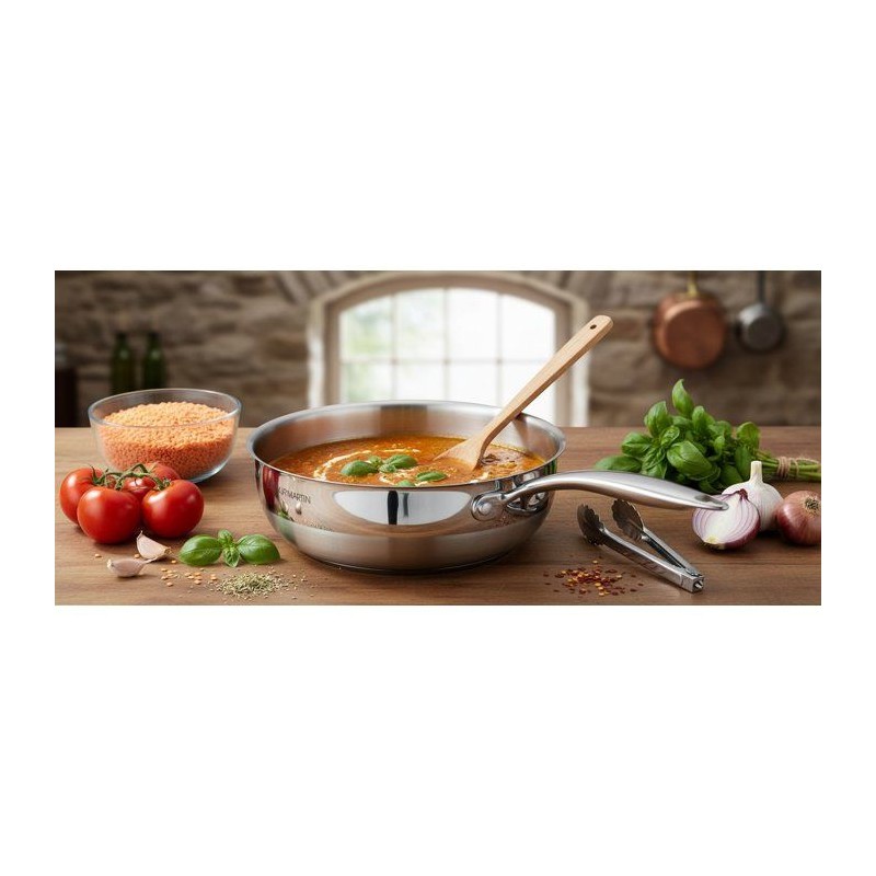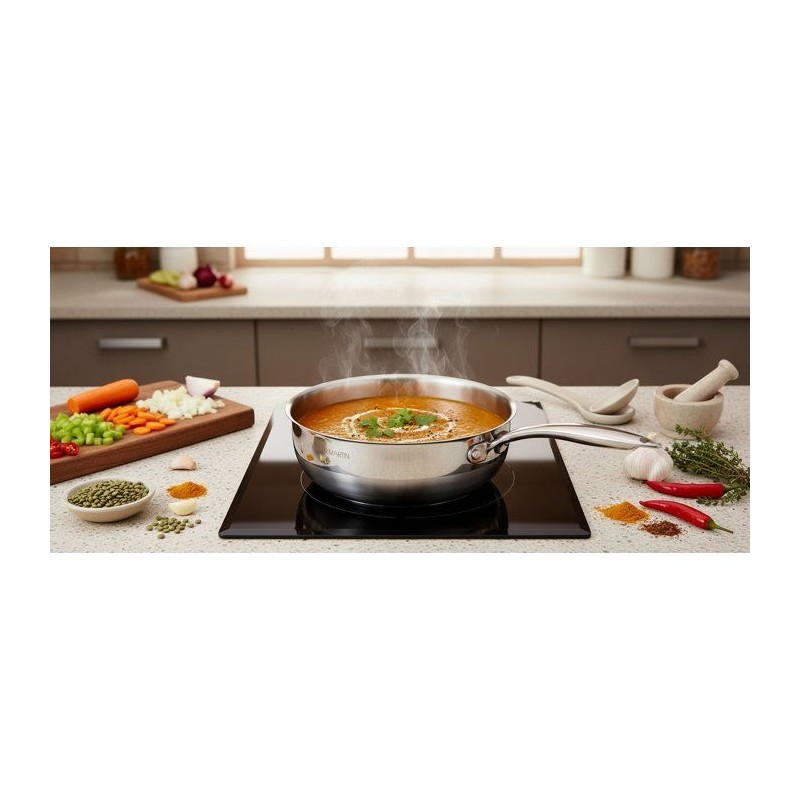 Équipez-vous comme un chef avec la sauteuse Grand Chef ARTHUR MARTIN. Fabriquée en inox 18/10 haut de gamme, elle se distingue par sa solidité exceptionnelle et sa résistance aux rayures. Sa forme profonde est idéale pour saisir, mijoter ou sauter vos préparations avec une excellente répartition de la chaleur. Les poignées rivetées offrent stabilité et confort lors de l'utilisation. Compatible tous feux dont induction, cette sauteuse fiable et élégante deviendra vite indispensable dans votre cuisine.