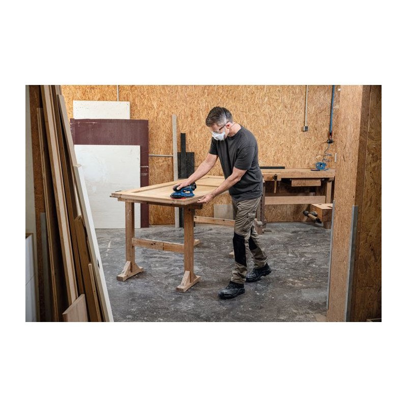 La GEX 12V-150-3 Professional est idéale pour le ponçage du bois, l'enlevement de peinture et de laque ainsi que pour le ponçage intermédiaire et fin de surfaces. Elle est compatible avec le systeme 12V Professional.