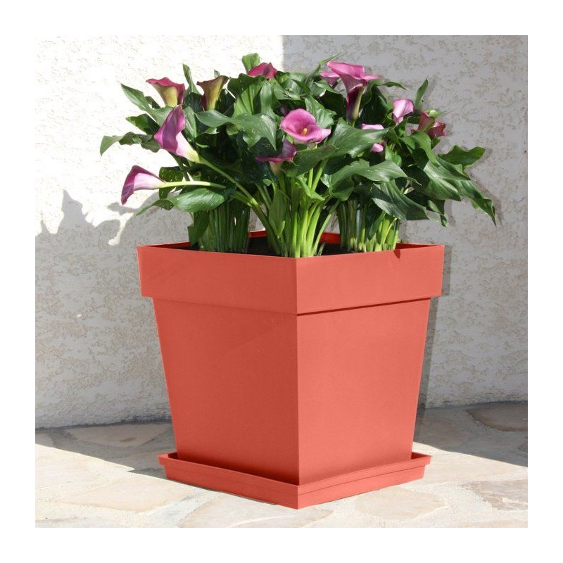Pot de fleur Carré - EDA - Toscane - 40 cm - 38 L - Zone de rétention d'eau - 39 x 39 x H.39 cm - Orange Terre Battue