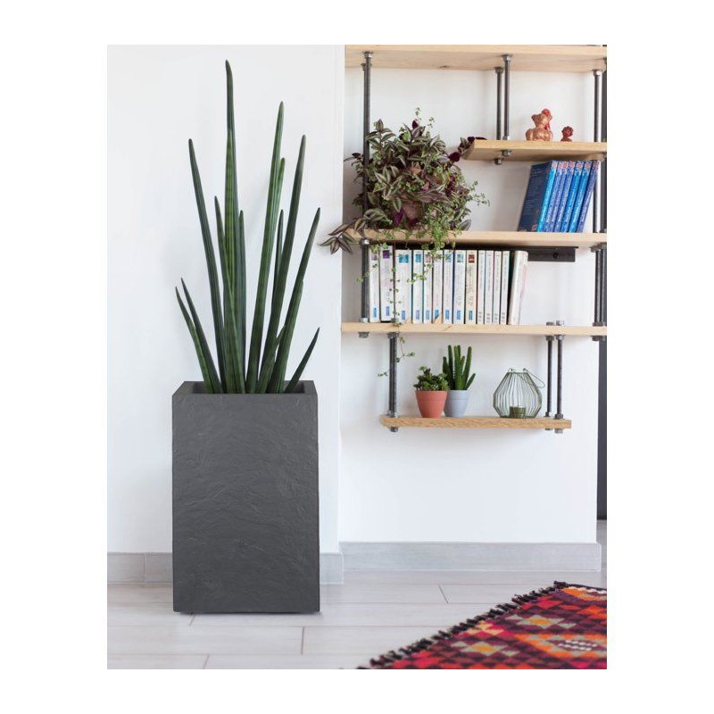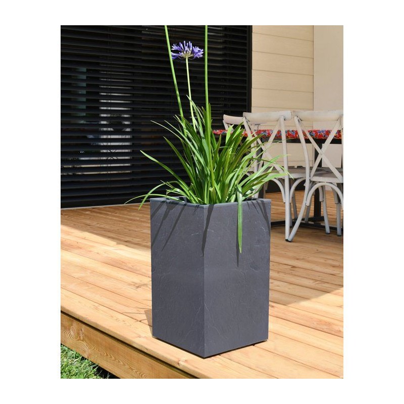 Pot de fleur Carré Haut 30 cm - EDA - Volcania Up - 36 L - Intérieur/Extérieur - 29,5 x 29,5 x H49,5 cm - Gris Anthracite