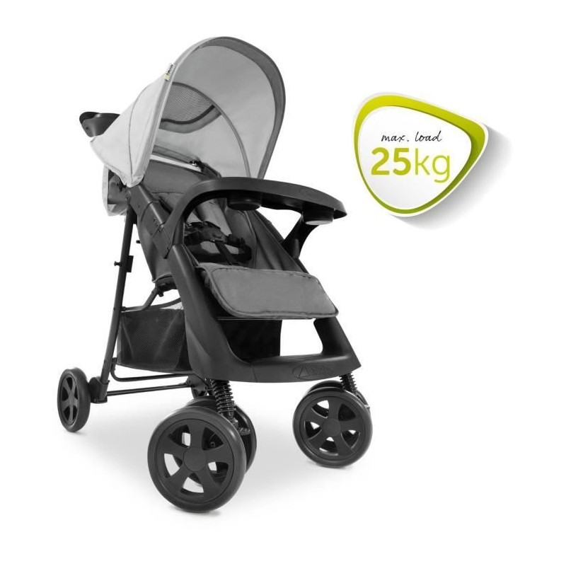 The Shopper Neo II is the perfect companion for your trips or shopping tours. It folds in an instant and with one hand, allowing you to have a free hand for your little one. This makes it ideal for public transport or stairs. In addition, its compact folding allows you to transport the Shopper Neo II even in small cars. Its large wheels promise real driving fun! Thanks to the front swivel and fixed wheels, the Shopper Neo II is very manoeuvrable even through narrow passages. The two bottle holders / accessory holders offer enough space for all your small items and drinks. Your purchases and your little one's equipment can be stored neatly in the large basket. When your little one is tired, you can adjust the backrest in stages with just one hand. The footrest is also multi-adjustable. Through the mesh window in the hood which ensures optimal ventilation, you can keep an eye on your child at all times. In addition, the padded 5-point harness and handrail ensure its safety. During your intermediate stops, the locking brake ensures a safe stop. Up to 25 kg. This stroller-the Shopper Neo II can be used for a long time as it can be loaded up to 25 kg. We are therefore far beyond the requirements of the legal standard.