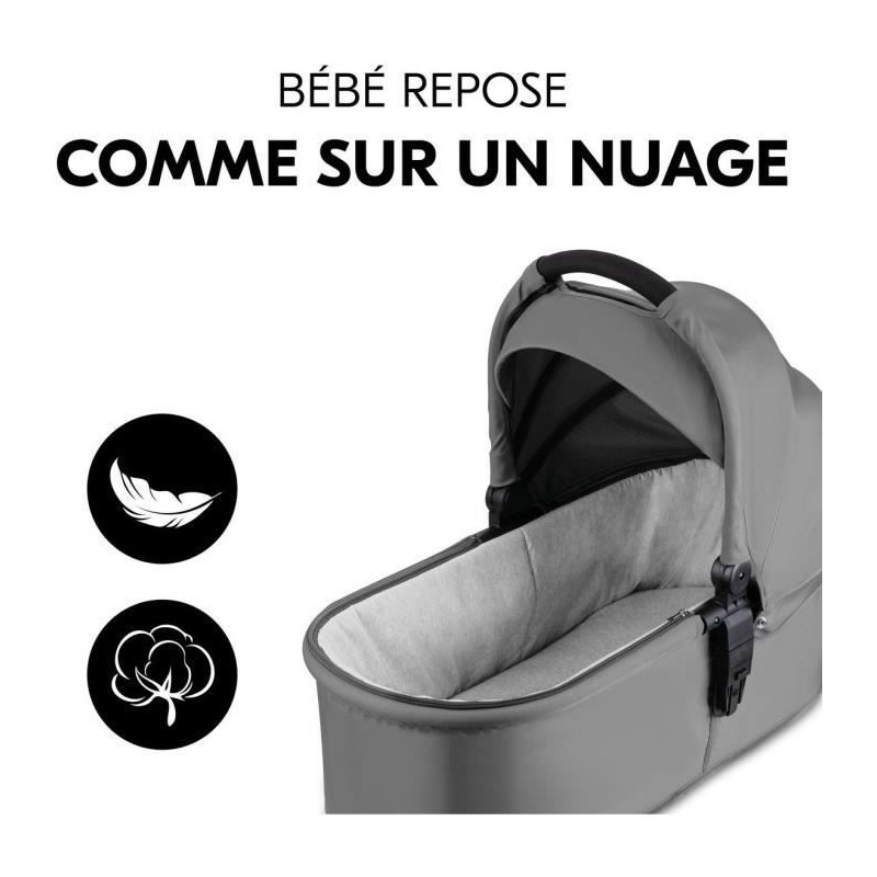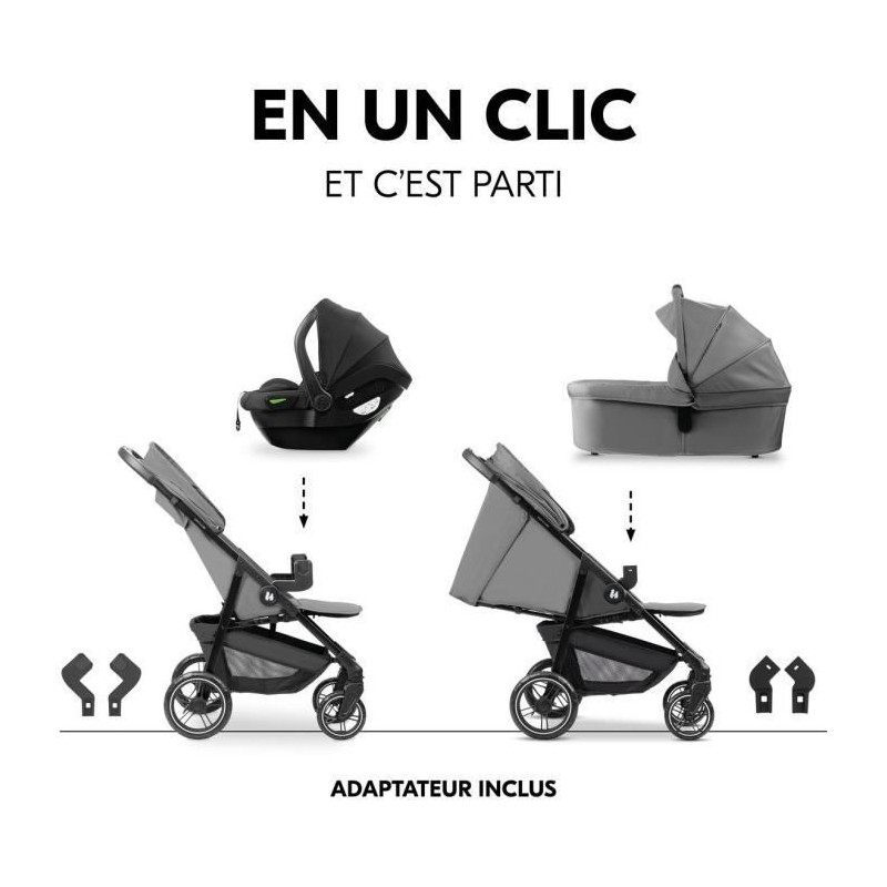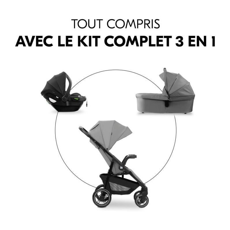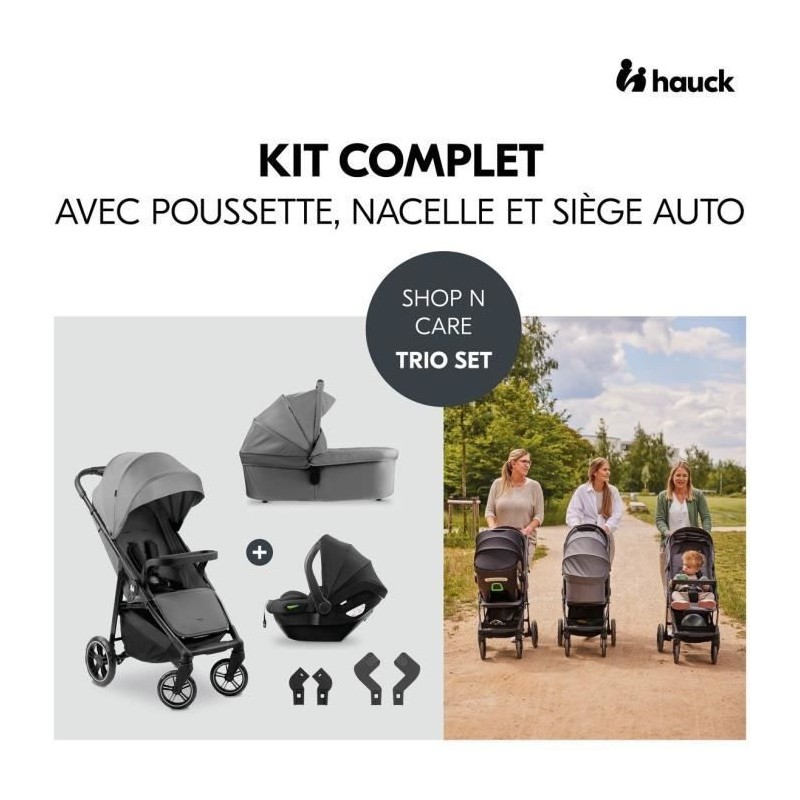 HAUK - Ensemble de voyage 3-en-1 Shop N Care Trio - Poussette + Nacelle + Siege auto & adaptateurs - 4 roues - Gris
