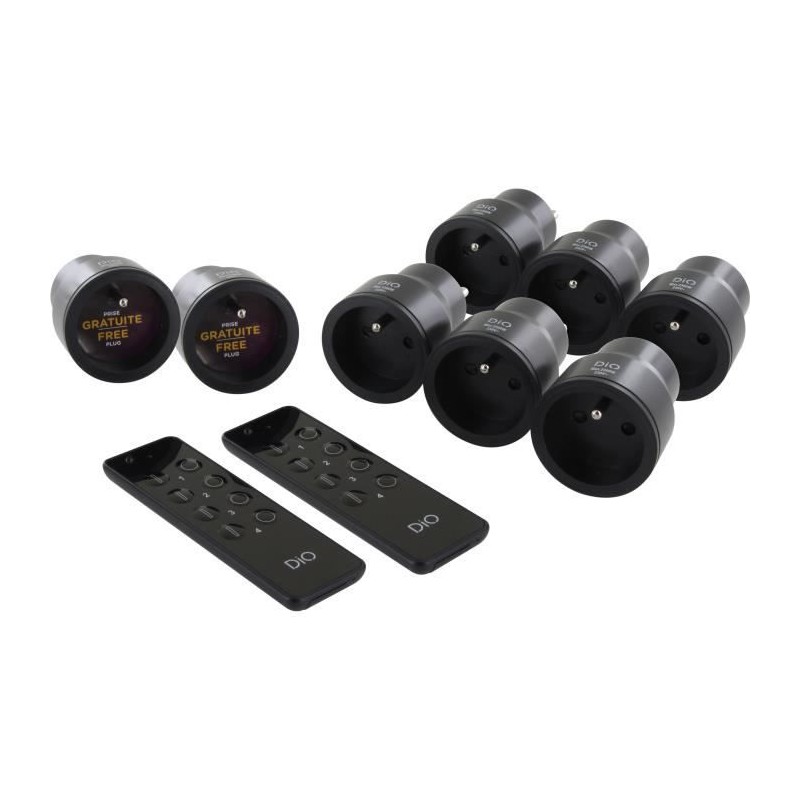 Kit prises connectées - DiO CONNECTED HOME - 8 prises nano noires On/Off - 2 télécommandes 3 canaux - DiO 1.0