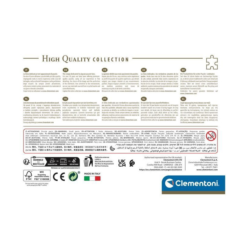 - Un puzzle de 500 pieces, de dimensions 49 x 36 cm avec son poster, proposé dans une boîte compacte idéale a ranger sur une étagere. - La gamme High Quality propose une multitude d'images et de formats différents pour une collection digne des vrais fans de puzzles. - Des images captivantes, une impression de qualité, des découpes précises et un matériau résistant.