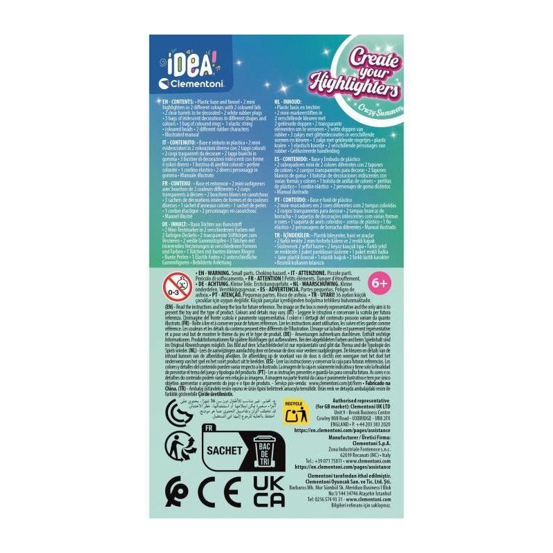 Découvrez le coffret créatif Crazy Summer de CLEMENTONI, qui permet d'assembler et de personnaliser 2 surligneurs avec des encres colorées et divers accessoires. Idéal pour les enfants a partir de 6 ans, ce jeu stimule la créativité et l'imagination tout en offrant des heures de plaisir.