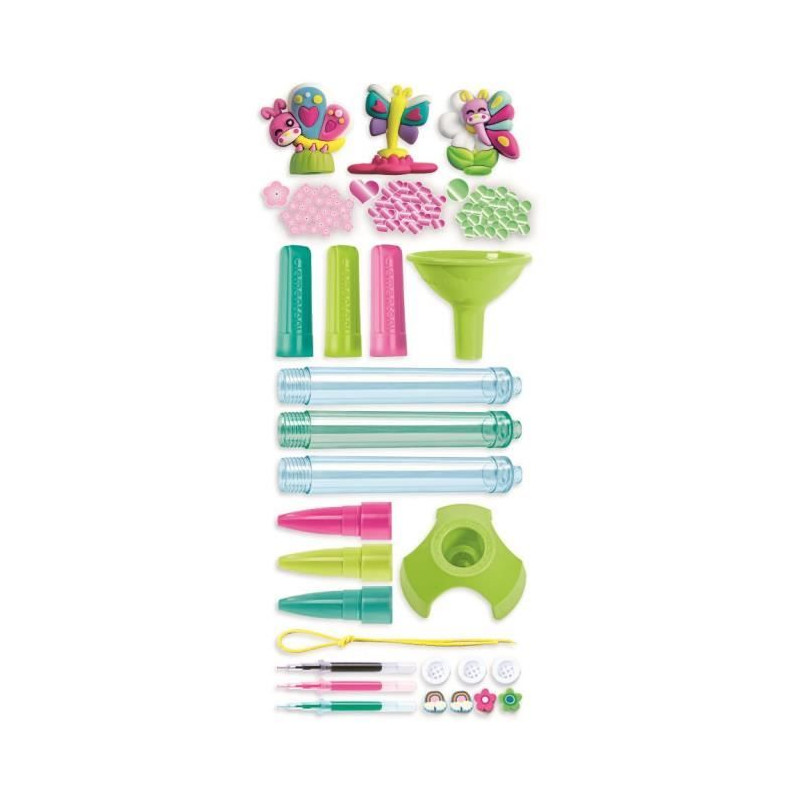 Découvrez le coffret créatif CLEMENTONI pour assembler et personnaliser 3 stylos sur le theme des papillons. Avec 4 encres colorées, 3 personnages et divers accessoires, ce jeu stimule la créativité des enfants a partir de 6 ans. Idéal pour des heures de plaisir créatif !