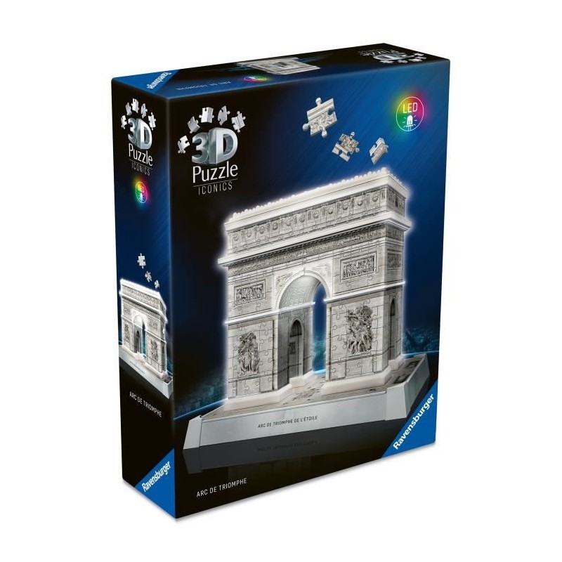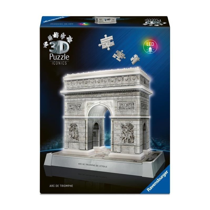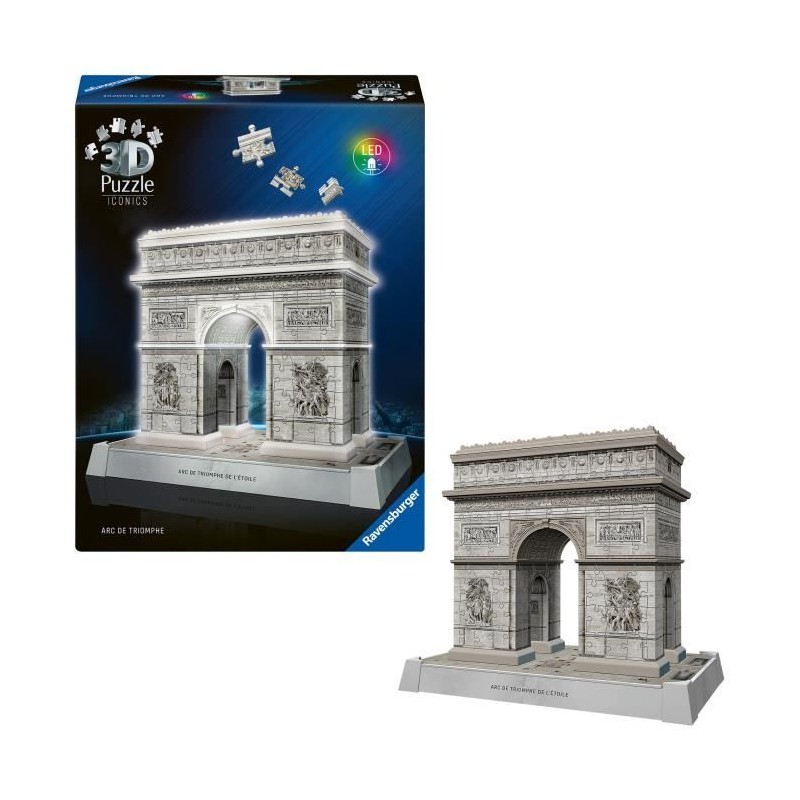 Une fois assemblée, cette superbe reproduction de l'Arc de Triomphe en 3D s'illumine grâce a un éclairage intégré !