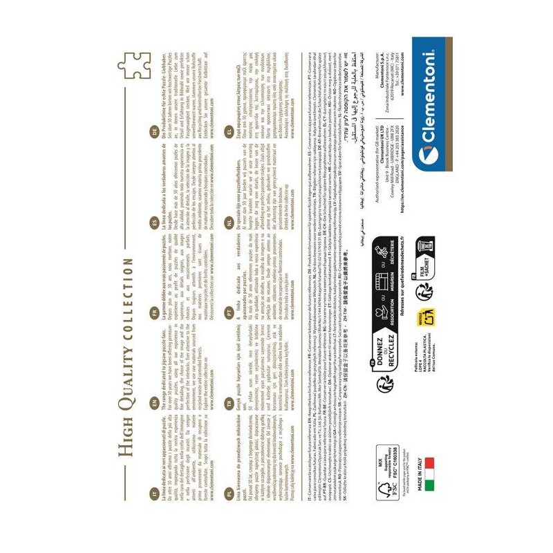 Un puzzle de 1000 pieces, de dimensions 70 x 50 cm avec son poster, proposé dans une boîte compacte. Des designs tendances, une impression de qualité, des découpes précises et un matériau résistant.