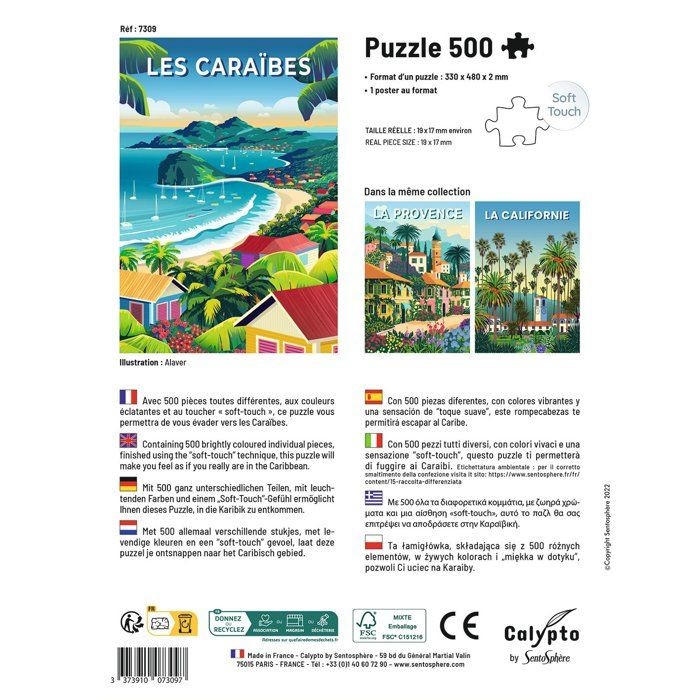 Puzzle - SENTOSPHERE - Calypto - 500 pieces - Les Caraibes - Toucher soyeux - Des 8 ans