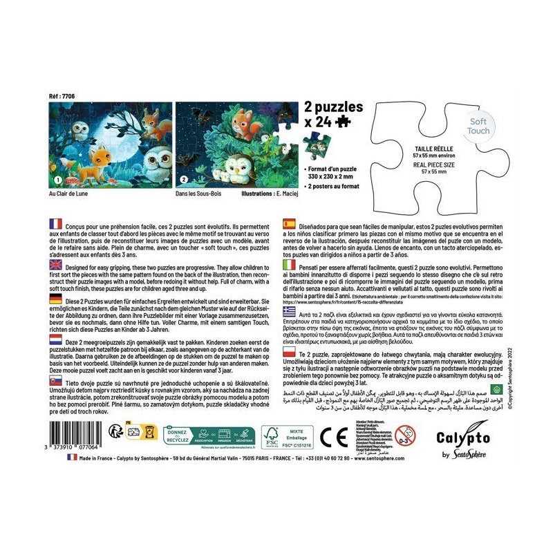 2 Puzzles - SENTOSPHERE - 24 pieces - Au clair de Lune - Observation - Mémoire - Logique - Des 3 ans