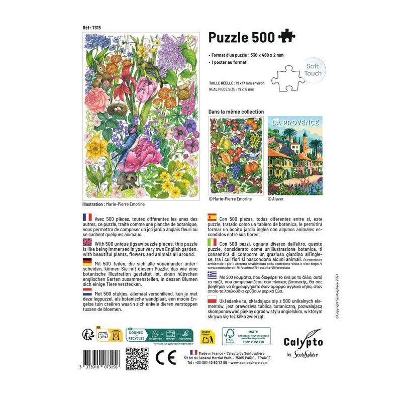 Puzzle - SENTOSPHERE - Calypto - 500 pieces - Les fleurs du Printemps - Toucher soyeux - Des 8 ans