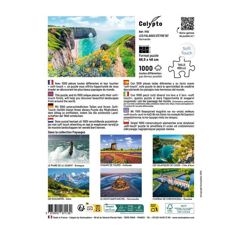 Puzzle - SENTOSPHERE - Calypto - 1000 pieces - Les Falaises d'Etretat - Normandie - Toucher soyeux - Des 9 ans