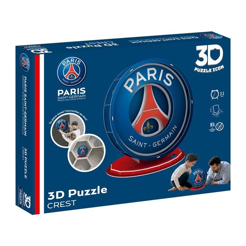 Le puzzle 3D de l'écusson du Paris Saint-Germain permet de reconstruire le blason du club en 19 pieces. Rapide, ludique et parfait des 7 ans, c'est un excellent cadeau pour tout fan du PSG.