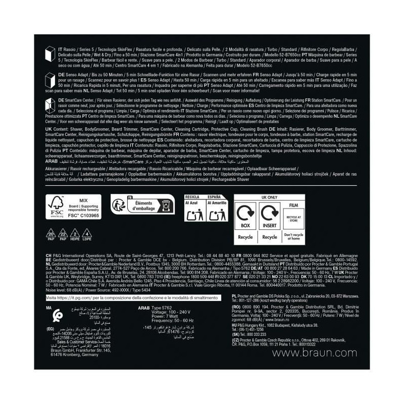 Le rasoir électrique Braun Series 5 offre un rasage facile et rapide. Les 3 lames flexibles s'adaptent pour suivre confortablement les contours de votre visage. 2 modes de rasage, Turbo et Standard, vous permettent de personnaliser votre rasage selon vos besoins. Le coffret inclut une station SmartCare 4-en-1 qui assure le nettoyage et un entretien optimal du rasoir électrique.