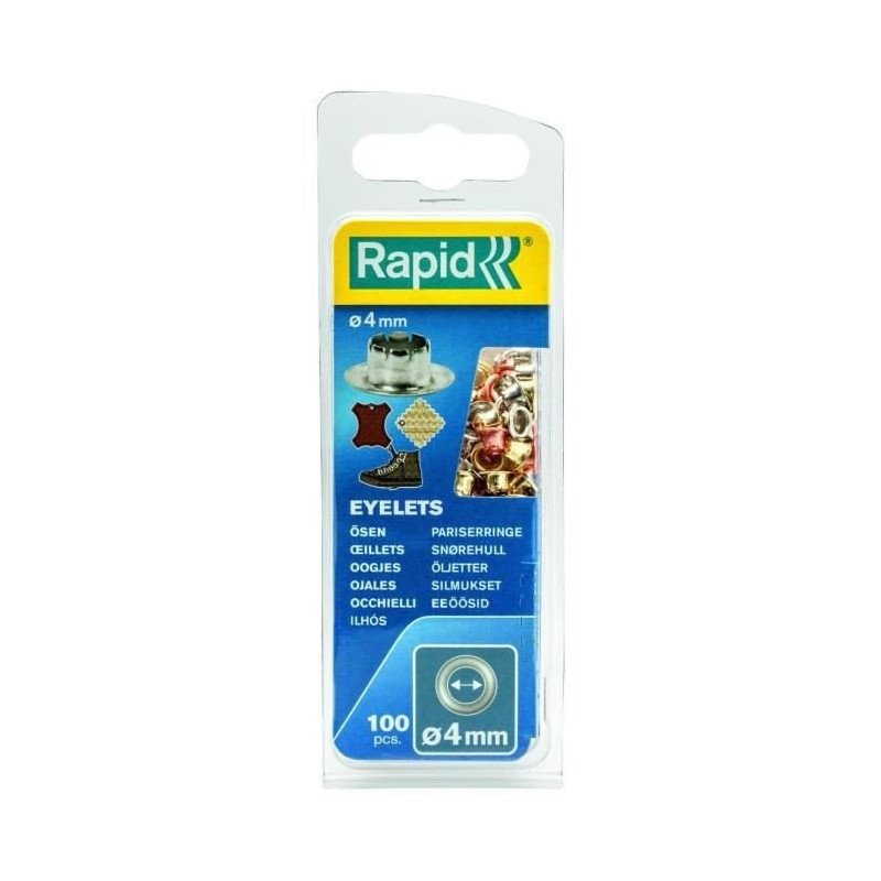 oeillets Ø 4mm - Blister de 100 pieces - Fabriqués en aluminium de haute qualité - Une seule piece : doit etre placé dans un matériau pré-perforé et etre enfoncé avec la pince RP05 ou a l'aide du tas a river également fourni (6-8mm) - Parfait pour les chaussures, ceintures, sacs....