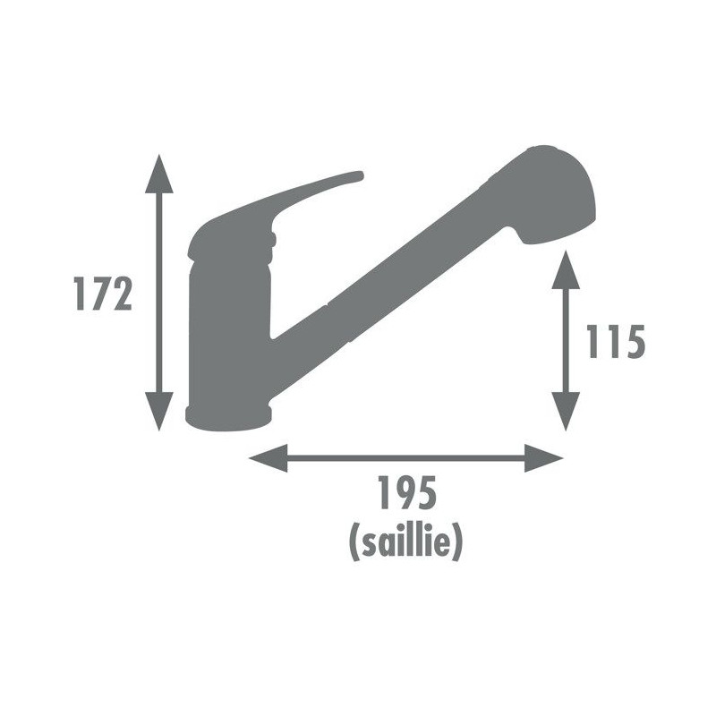 Le mitigeur évier BAGO allie un design classique a une douchette extractible a 2 jets, idéale pour un usage quotidien. Fabriqué en laiton et zamak, il offre une installation facile et un flexible inox de 1,20 m. Parfait pour une cuisine fonctionnelle, il mesure 172 mm de hauteur totale.