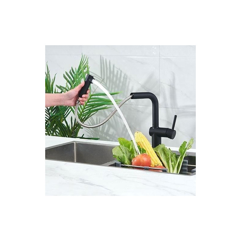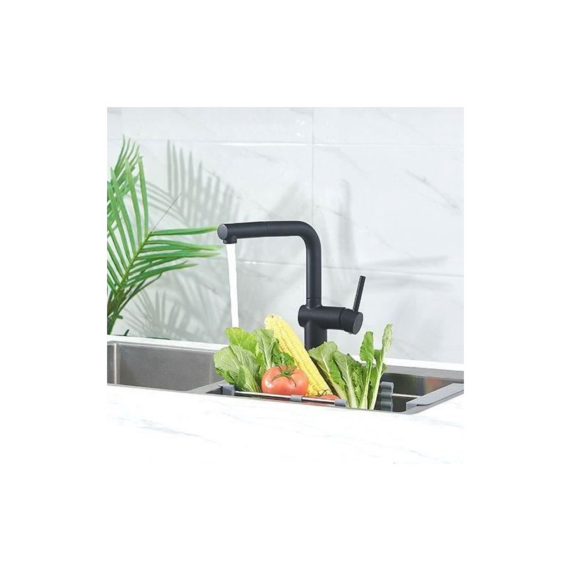 Edouard Rousseau - Mitigeur Evier CARRÉ - Douchette extractible - Noir