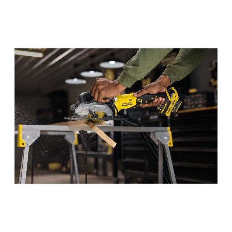 PLATEFORME SANS FIL 18V STANLEY® FATMAX® V20 : une batterie pour tous vos outils de bricolage et d'entretien des espaces extérieurs. La scie circulaire 115 mm SFMCS515B-XJ de la gamme V20 de STANLEY FATMAX est un outil performant et polyvalent qui offre une performance de coupe supérieure et une grande durabilité grâce a son moteur brushless.