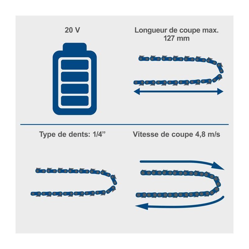 Scie de jardin sans fil SCHEPPACH C-PS100-X - SET S - 2 batteries 20V IXES 2 Ah + chargeur double