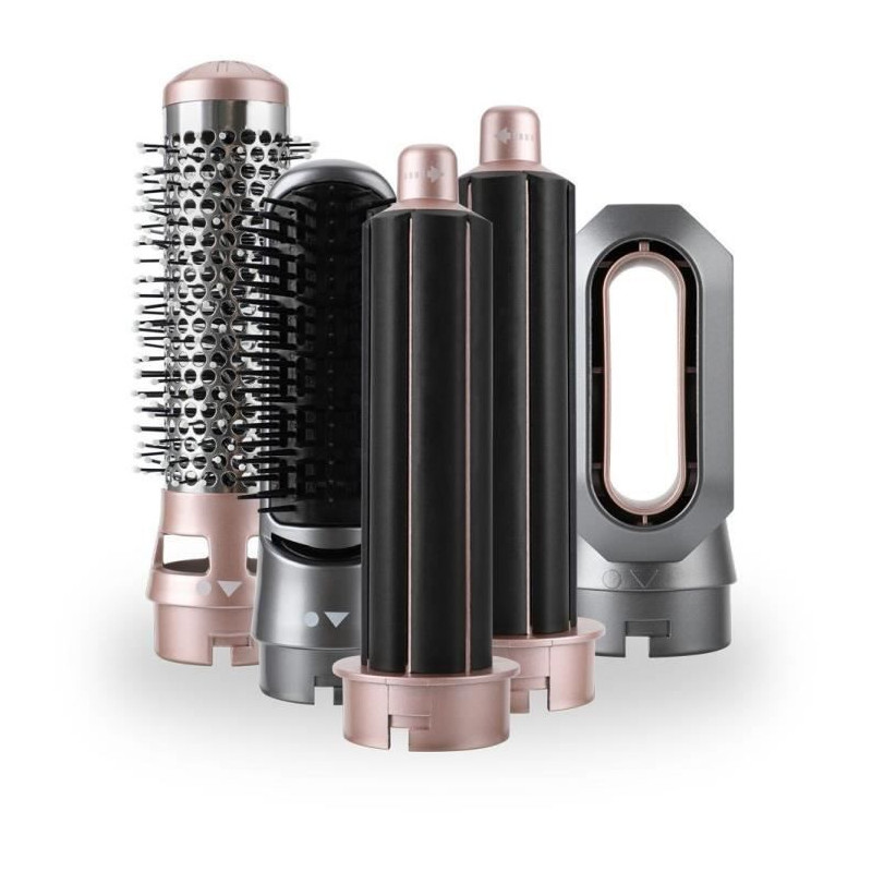 Combinaison parfaite de seche-cheveux, boucleur, lisseur et volumateur. Différentes coiffures avec un seul appareil. 3 températures. · 5 tetes interchangeables : tete pour sécher : projette un flux d'air direct pour un séchage plus précis tete pour lisser : seche et lisse les cheveux en meme temps. Brosse : donne du volume et ondule les cheveux. 2 rouleaux a boucler (gauche et droite) : enroule automatiquement les cheveux et crée des ondulations définies. Câble pivotant a 360°. Packaging : étui magnétique de qualité supérieure.