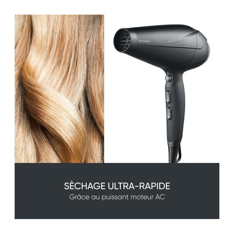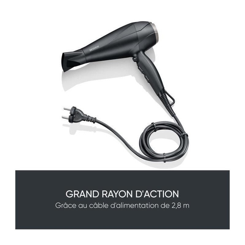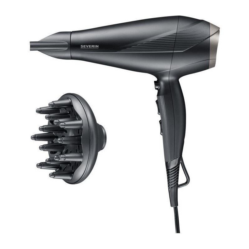 Seche-cheveux ionique - SEVERIN - HT 0167 - Pro - Diffuseur & Concentrateur - 2300 W - 3 niveaux de température - Noir