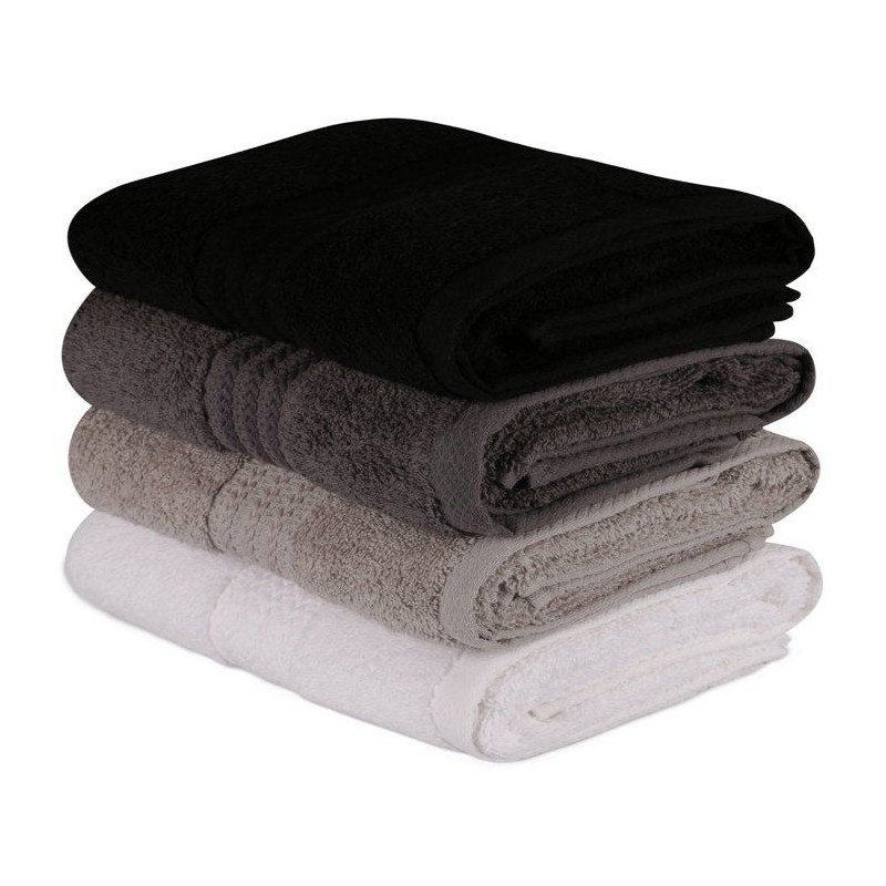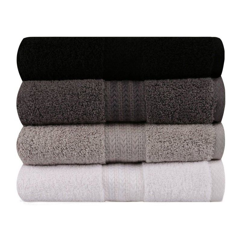 Ensemble de 4 serviettes a main - 50 x 90 cm - Blanc, Gris, Anthracite, Noir