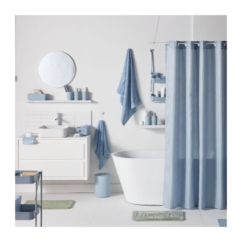 Set de douche - TODAY - UTILITY - Panier, tapis, rideau - Blue