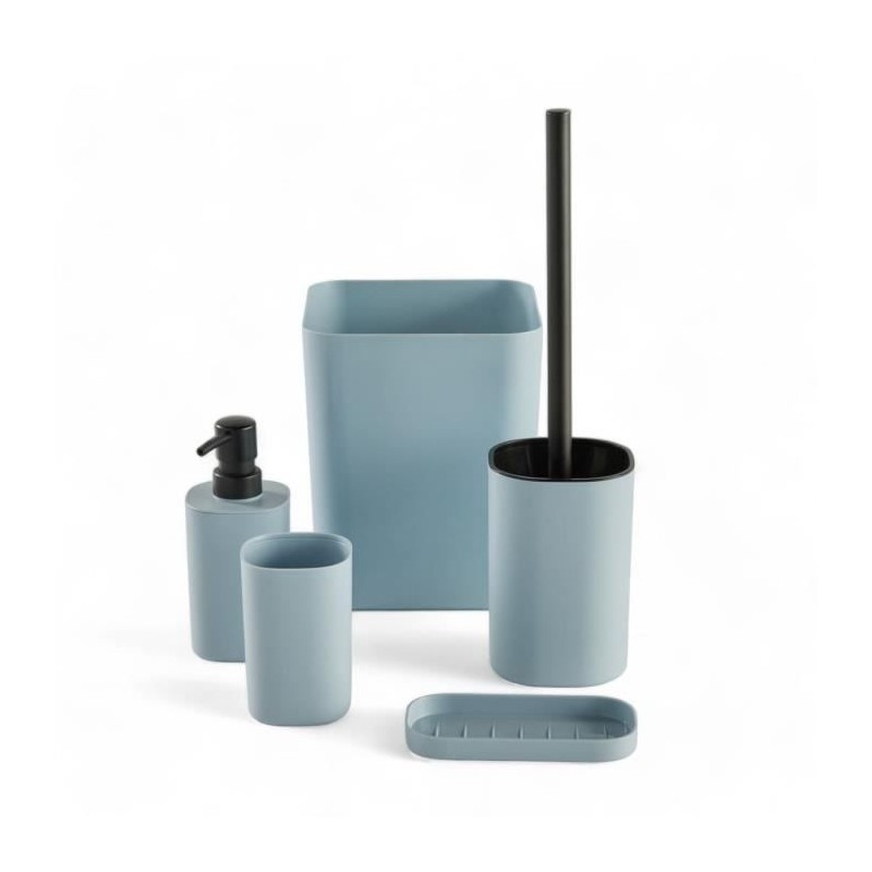 Set de 5 acc SDB - TODAY - UTILITY - Distr de savon, porte-brosse a dents, porte savon, brosse WC, poubelle - Blue