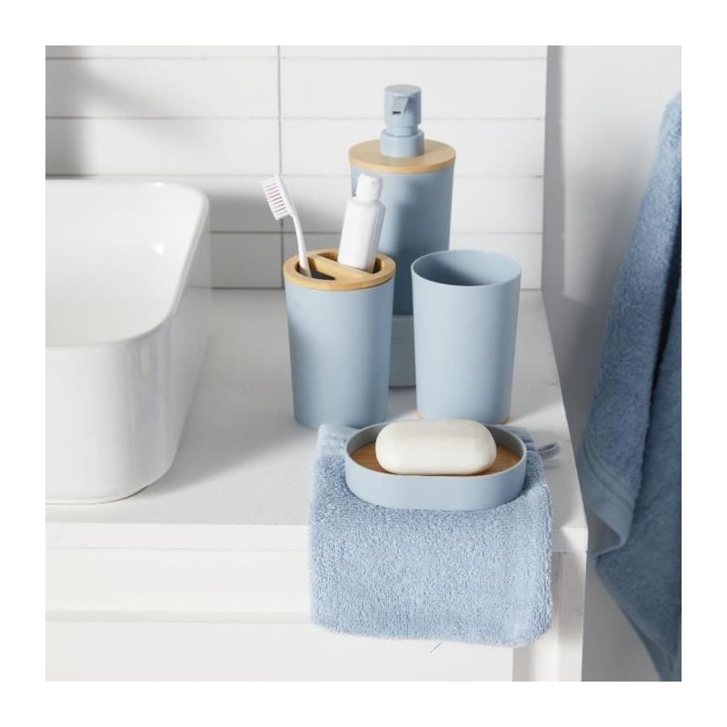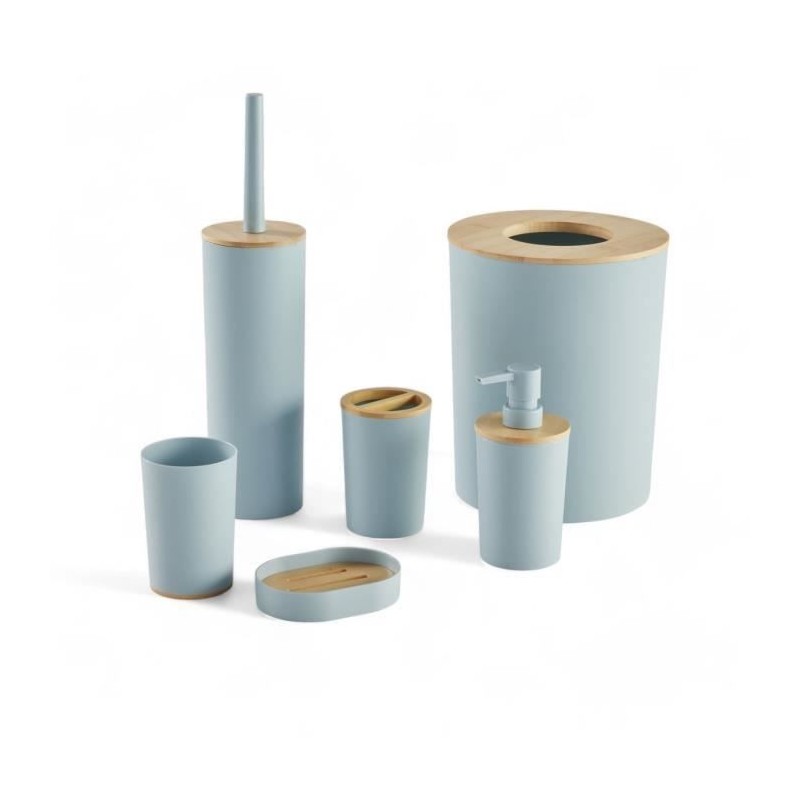 Lot de 6 acc SDB - TODAY - UTILITY - Dist savon, gobelet, porte-brosse a dents, porte savon, brosse WC, poubelle - Blue