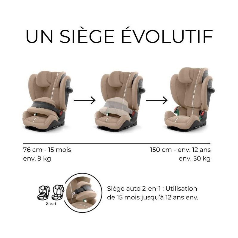 Siege auto Pallas G i-size Cybex Gold 76 a 150 cm - 9 a 50 kg - 15 mois a 12 ans - Almond beige (Plus)