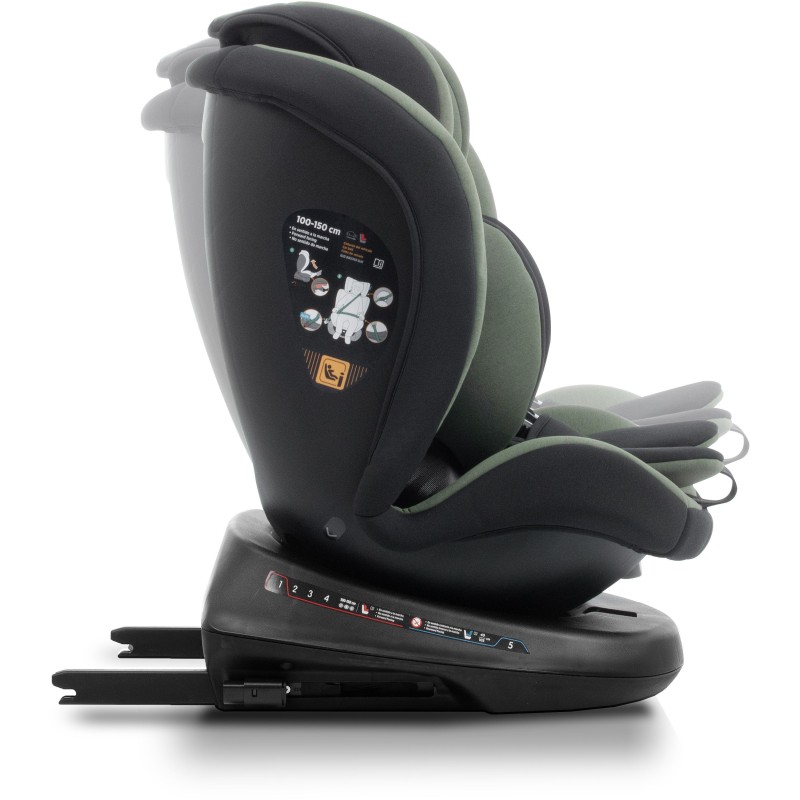 Siege enfant pivotant sur la base et multifonctionnel, pour les enfants de 40 a 150 cm (ECE R-129 0 - 36 kg). Il peut etre installé dos a la route (jusqu'a 18 kg ou 105 cm) et face a la route jusqu'a 36 kg ou 150 cm. Le harnais 5 points garantit confort et sécurité. De plus, le siege enfant est équipé du systeme Isofix et d'une sangle de fixation supérieure. L'appuie-tete est réglable sur 13 niveaux. Le siege auto permet de transporter les enfants sur 4+1 positions d'inclinaison.