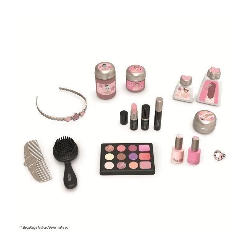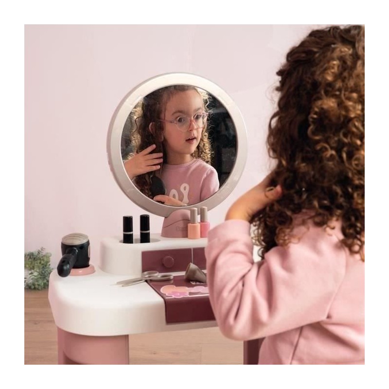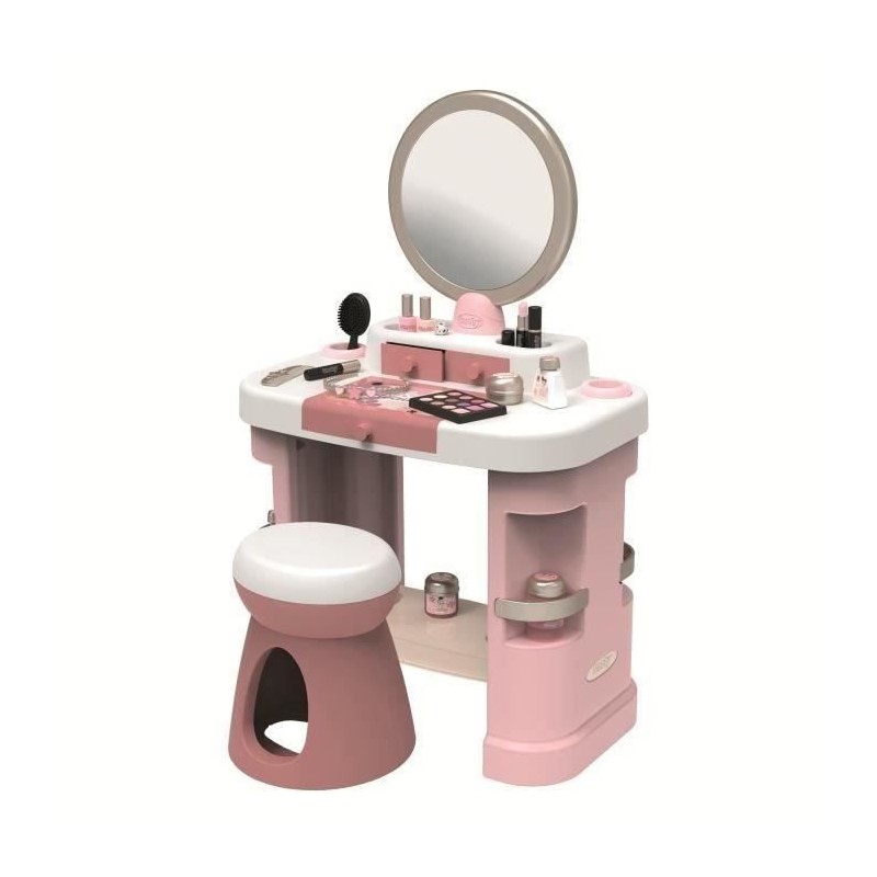 La Coiffeuse My Beauty est un incontournable sur le univers de la beauté. Le produit reprend les 3 thématiques préférées de la beauté au travers de ses accessoires a savoir: coiffure, onglerie et maquillage._x000D_ Son design épuré et ses couleurs douces se marieront parfaitement dans la chambre de votre enfant._x000D_ _x000D_ Le produit dispose d'un grand miroir inclinable, de tiroirs, pots et trappe de rangement pour disposer les accessoires._x000D_ 15 accessoires factices inclus : 2 rouges a levres avec fonctions mécaniques*, 2 vernis*, 1 mascara*, 1 palette de phare a paupiere*, 3 pots, 2 flacons, 1 peigne, 1 brosse, 1 bague et 1 serre tete._x000D_ _x000D_ Structure de la coiffeuse en plastique soufflé assurant une parfaite rigidité et robustesse dans le temps._x000D_ _x000D_ Ce jouet contient au moins 60% de matiere recyclée._x000D_ _x000D_ _x000D_ A partir de 3 ans. Fabrication française._x000D_ * Le maquillage est factice._x000D_ Hauteur tabouret:27,5cms 60% de matiere recyclée._x000D_ _x000D_ _x000D_ A partir de 3 ans. Fabrication française._x000D_ * Le maquillage est factice._x000D_ Hauteur tabouret:27,5cm_x000D_ Hauteur plateau: 48,5cm