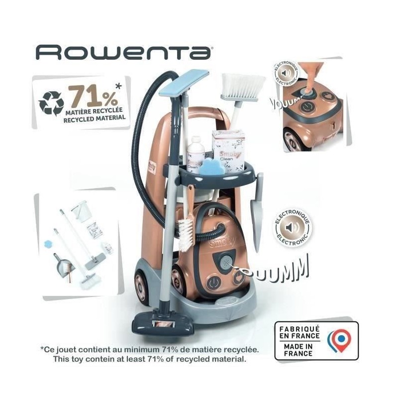 SMOBY - Rowenta Chariot Ménage + Aspirateur - des 3 ans