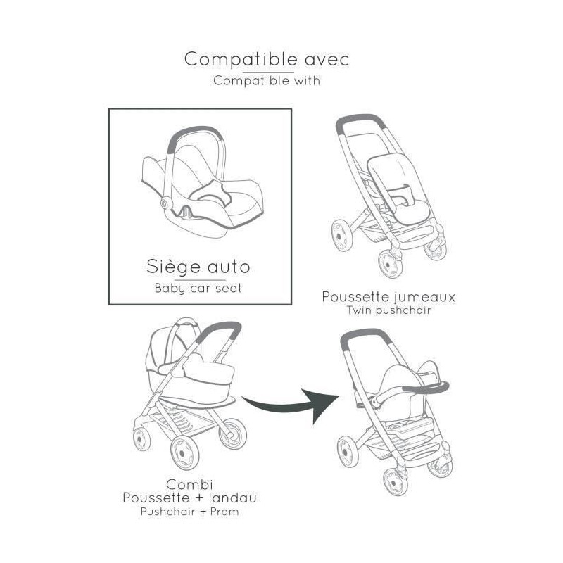 Tu pourras devenir une vraie maman ou un vrai papa et emmener ton poupon partout avec toi avec le siege Maxi-Cosi !_x000D_ Tu n'auras qu'a installer confortablement ton poupon préféré dans le siege et partir a l'aventure ! Aucune chance qu'il ne tombe grâce a la ceinture de sécurité !_x000D_ Tu pourras amener avec toi divers accessoires grâce au coffre de rangement situé a l'arriere._x000D_ En plus, tu n'auras aucun mal a transporter le siege grâce a sa légereté et sa poignée orientable !_x000D_ A partir de 3 ans. Fabrication espagnole.