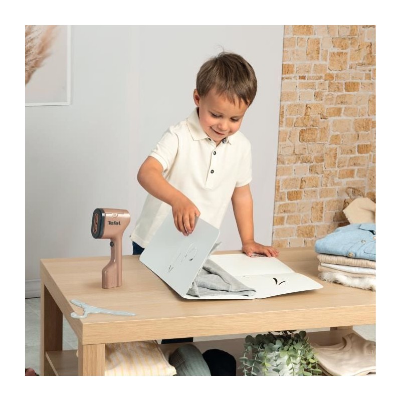 Grâce au Set "Défroisse & Plie", les enfants peuvent désormais imiter papa et maman tout en apprenant de façon ludique a s'occuper du linge. Avec le défroisseur Tefal et le cintre inclus, ils s'amusent a défroisser les vetements comme des pros. Ensuite, grâce au plieur ingénieux, plier le linge devient un véritable jeu d'enfant ! Une activité amusante et éducative pour développer autonomie et habileté des le plus jeune âge.