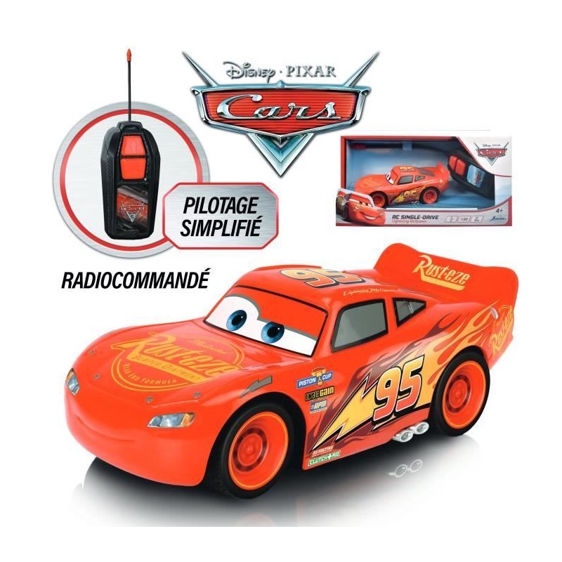 Plonge dans l'univers de ton dessin animé préféré : Cars !_x000D_ _x000D_ Aux commandes de cette voiture radiocommandée Flash McQueen a l'échelle 1/32eme (14cm) tu pourras t'entraîner a devenir le meilleur pilote de course !_x000D_ _x000D_ Grâce a la télécommande possédant des fonctions simples de pilotage et une préhension adaptée aux plus petits, tu arriveras facilement a diriger ta voiture. Tu pourras la faire avancer et la faire reculer en tournant._x000D_ _x000D_ 1 canal et fréquence 27MHz._x000D_ 4 piles LR6 non incluses._x000D_ _x000D_ Sous licence officielle Cars._x000D_ A partir de 4 ans.