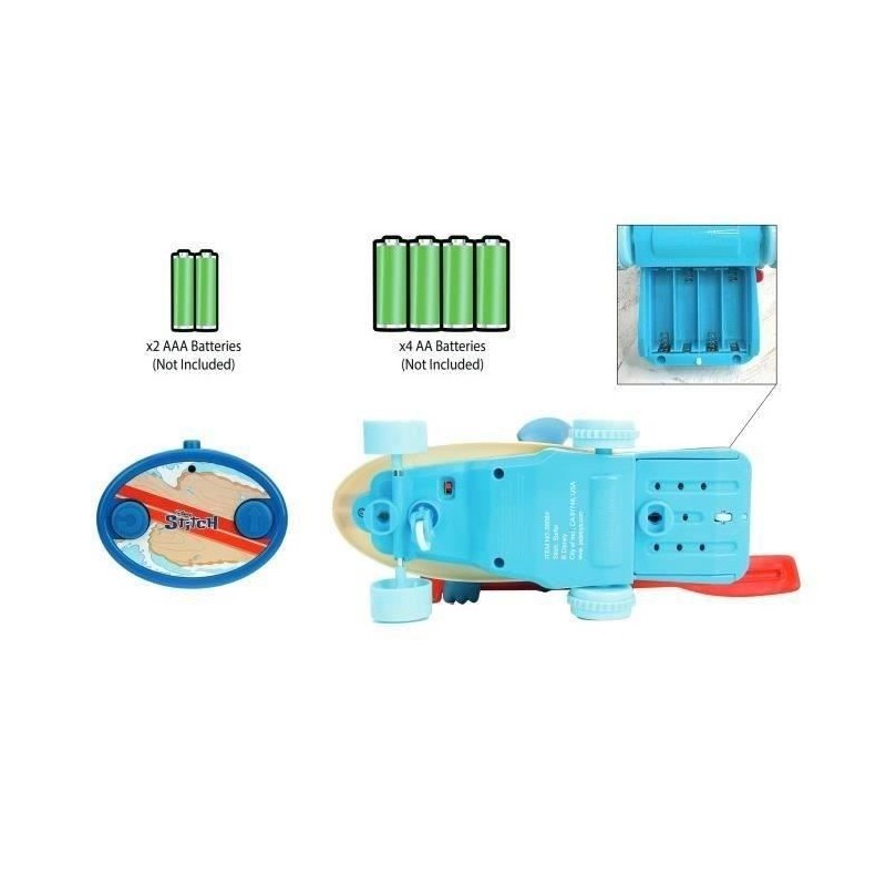 Pars a l'aventure avec la RC Stitch Surfer !_x000D_ _x000D_ Avec son systeme radiocommandé, tu pourras le faire avancer, le faire tourner a 360°, et il se relevera tout seul en cas de chute. Il mesure 25cm et est tres simple d'utilisation : tu pourras le prendre en main tres rapidement et t'amuser avec Stitch !_x000D_ _x000D_ Il a une autonomie de 60 minutes d'utilisation et peut aller jusque 15m avec une vitesse 1,4m/s._x000D_ _x000D_ Piles non incluses. Requiers 4 piles AA pour le véhicule, 2 piles AAA pour la télécommande._x000D_ Technologie 2,4 Ghz._x000D_ _x000D_ Sous licence officielle Disney._x000D_ A partir de 3 ans.