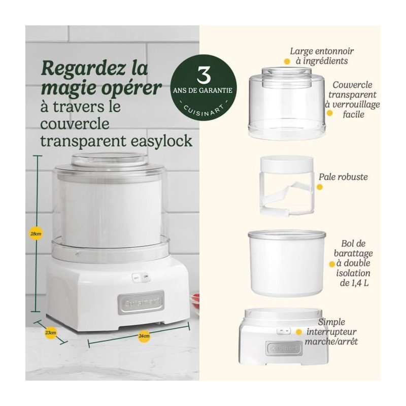 Sorbetiere CUISINART - ICE21E - 35 W - 1,4 L - Blanc