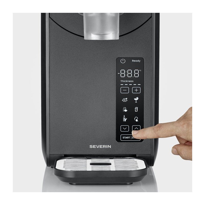 La SEVERIN EZ7410 réalise glaces, sorbets, yaourts et boissons slush grâce a son compresseur intégré. 5 programmes prédéfinis, fonction chaud & froid, maintien au frais jusqu'a 12 h. Écran tactile précis, programme de nettoyage auto et cuve 2 L. Design inox durable et pieces compatibles lave-vaisselle.