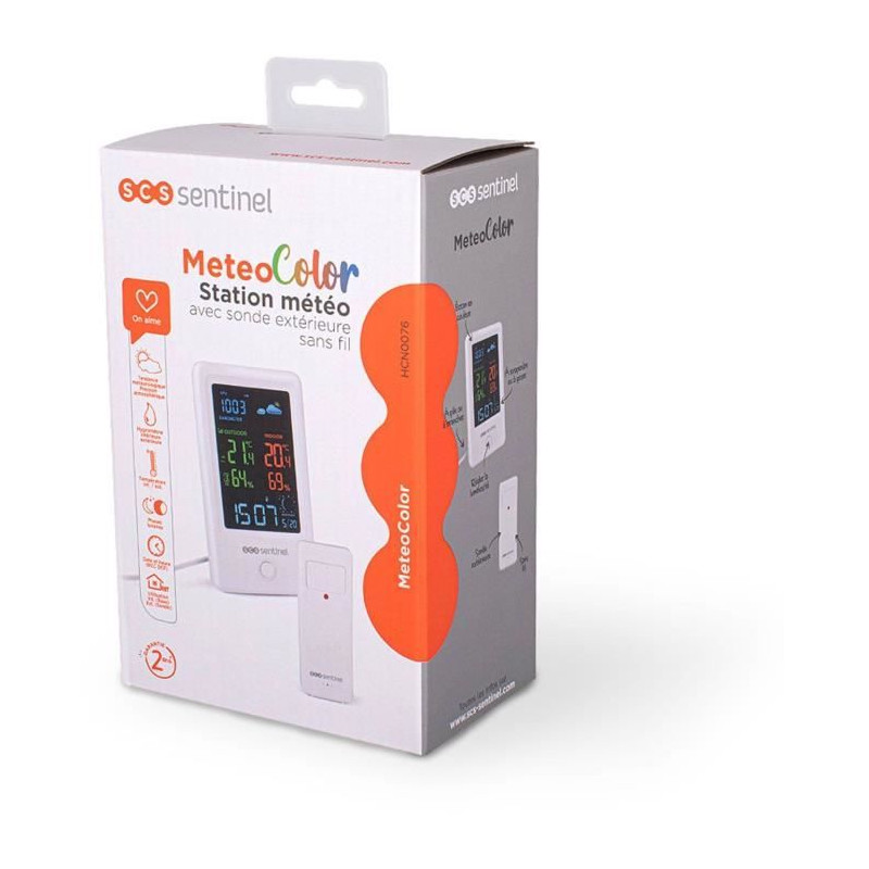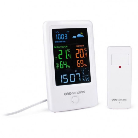 Station météo avec sonde extérieure sans fil - SCS SENTINEL - HCN0076 MeteoColor - Portée : 60 m - 433,92 MHz - Blanc