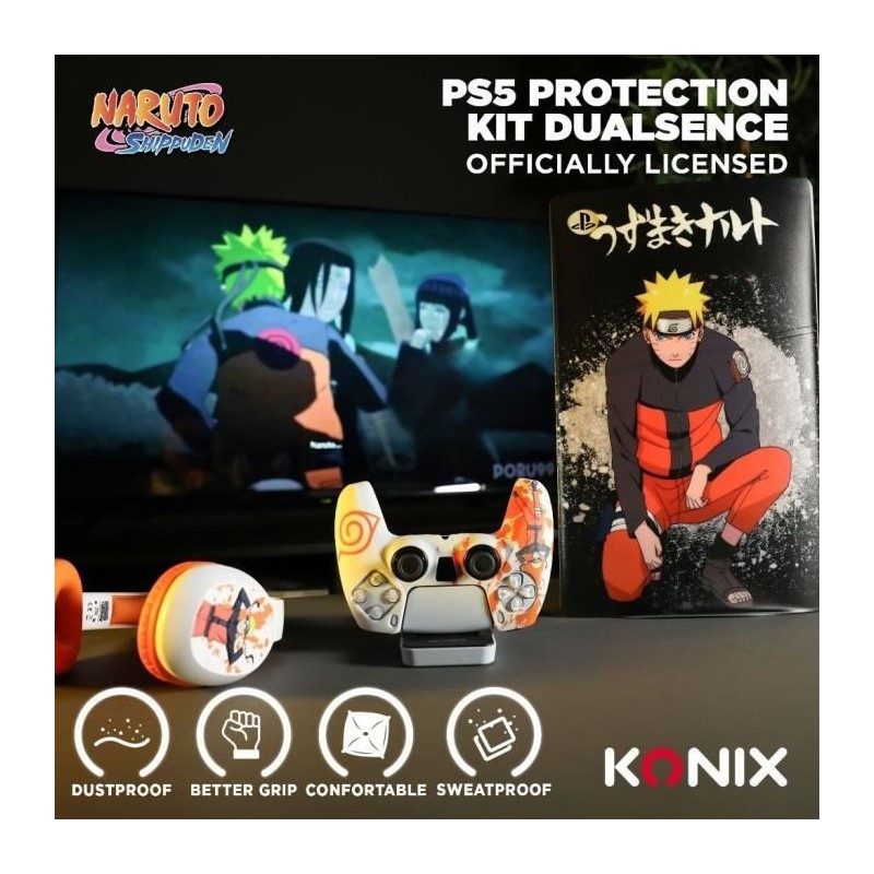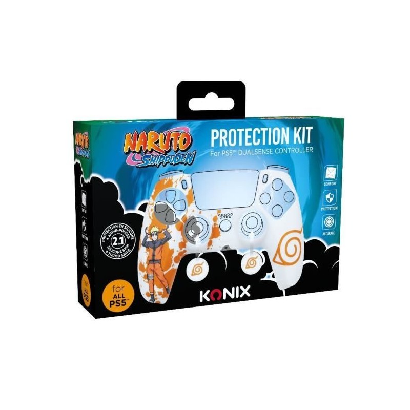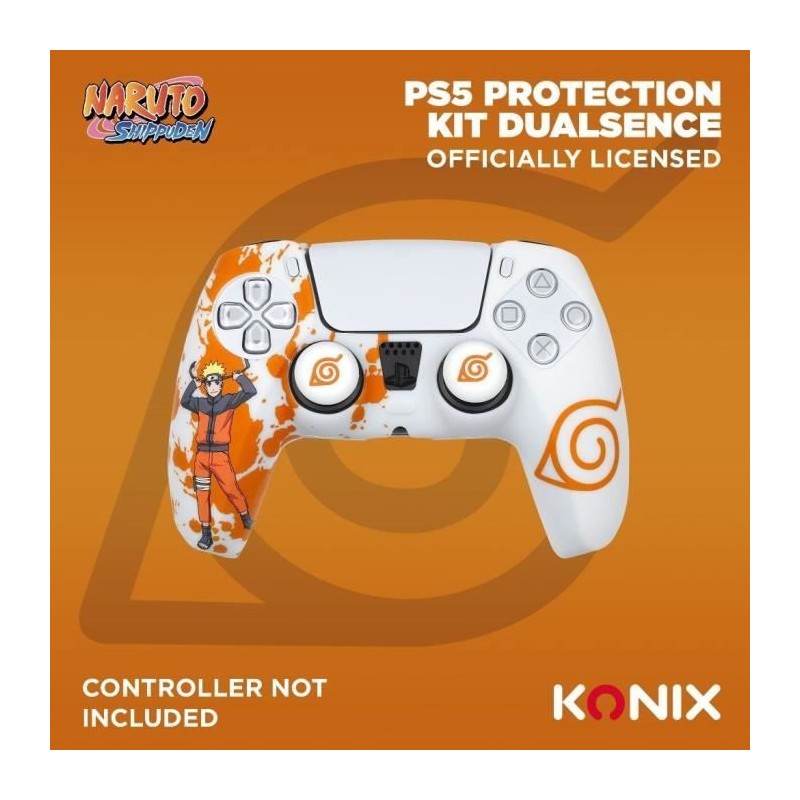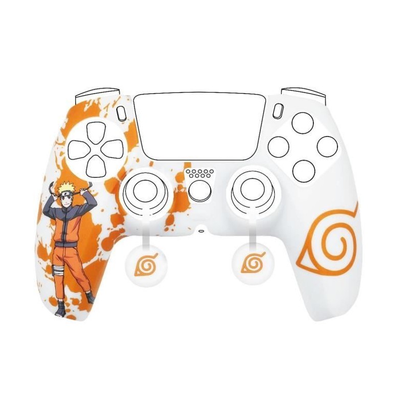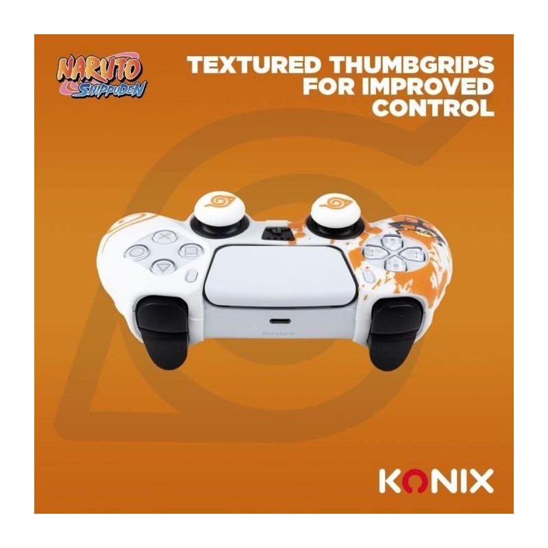 Coque de Protection - KONIX - Pour manette DualSense PS5 - Silicone - Appuie-Pouces - Motif Konoha et Naruto - Blanc