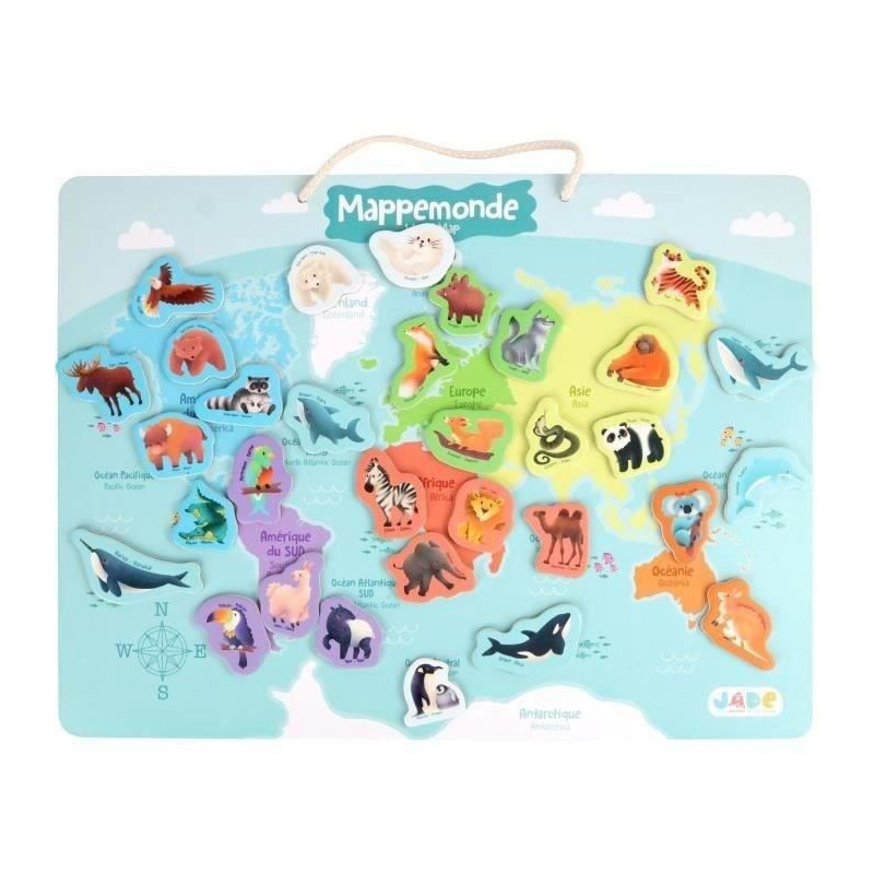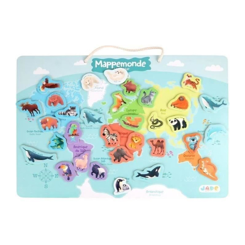Plateau magnétique des continents - Jeu Éducatif - J.A.D.E - 30 pieces animaux - BOIS FSC - 40x30 cm - Des 3 ans